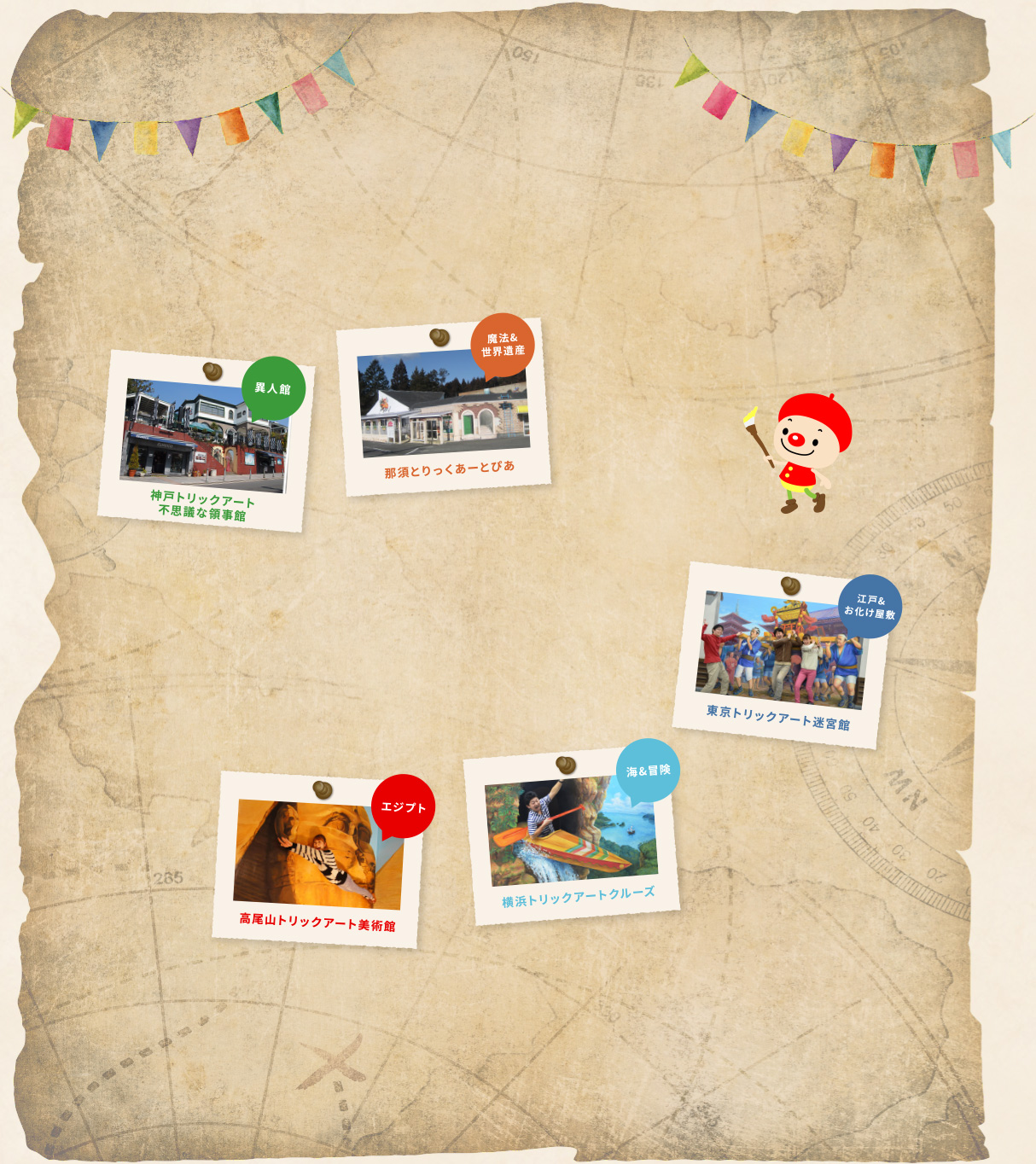 トリックアート美術館は北海道から九州まで全国各地にあります。 それぞれが異なったテーマで創られており、不思議な世界と個性豊かな作品を楽しめますよ!